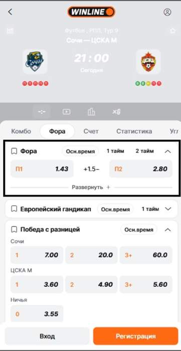 Чтобы лучше понять, как работает фора, рассмотрим несколько практических примеров на основе матча между Сочи и ЦСКА.
