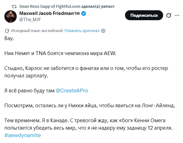 Дрю Макинтайр поднял планку в сюжете с Коди Роудсом до предела, анонсировав на минувшем эфире SmackDown матч по правилам трех кругов ада против Коди Роудса за титул неосп ... Читать дальше »