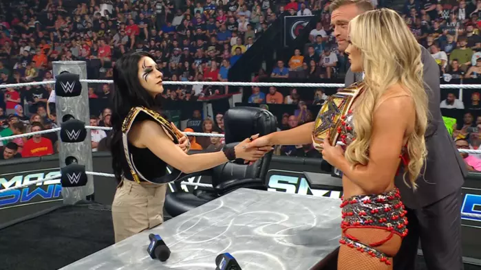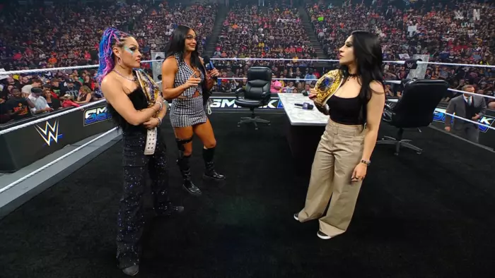 Шарлотт Флэр и Алекса Блисс находятся за кулисами с Кэти Келли, и она спрашивает их про Сол и Зарию. Они говорят, что это было впечатляюще. Иногда вы не всегда ладите. Флэр говорит, что они прошли долгий путь и будут готовы еще лучше, когда встретятся с ними. Флэр издает свой "вуууу" и просит Алексу сделать то же, но она отказывается. Кэти делает это, и Алекса с Флэр уходят. Стефани Вакер появляется за кулисами, тем временем.