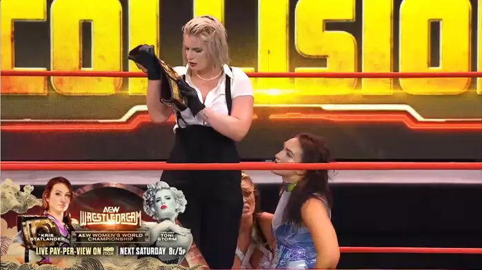 Далее Лекси Нэйр берет интервью у Крис Стэтлендер и Харли Кэмереон. Нэйр отметила, что отношения между Крис и ее соперницей на Реслдриме постепенно накаляются, однако Крис возразила: она считает, что женщины просто поддерживают женщин и поддерживает борьбу друг с другом. Кэмерон же призналась, что хочет участвовать в командном турнире и даже звала для работы в команде Мерседес Моне, но получила отказ: так, может быть, Крис сама хочет поучаствовать в борьбе за командные титулы? Крис ответила, что с радостью бы поучаствовала, но ей нужно сосредоточиться на матче со Шторм. Это сильно расстроило Харли: она считает себя всего лишь сиротой из команды поддержки. В разговор вклинивается Уиллер Юта, говоря, что снова Крис Стэтлендер кидает своих друзей, однако его из разговора выдавливает подоспевшая Шторм: та рвет на себе рубаху и призывает «сделать выстрел прямо сейчас». Юта оперативно слинял из горячей ситуации, а Кэмерон и Нэйр постаралась успокоить будущих соперниц.