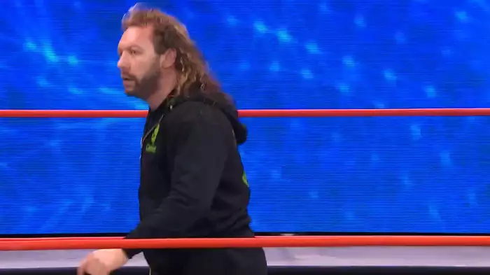 Мы снова переносимся за кулисы, где Кенни обращается к Дону Каллису. Омега вспоминает их прошлое, что их разделило, и как их конфликт никогда не закончится, но тут его речь прерывает стук в дверь. Кенни разрешил войти, стучавшим оказывается Джек Перри. Перри признался, что едва ли Кенни хочет его видеть, но он сожалеет о произошедшем с Ибуши, и он готов поддержать Кенни, если тому это нужно. Кенни не понимает, с чего такие слова от Перри, ведь тот участвовал в избиении Омеги в его родном городе, смеялся над его болью из-за дивертикулита и над тем, что Кенни может не вернуться. Перри прерывает Омегу, говорит, что все понимает, но не может ничего поделать с прошлым, но вот что важно: у них общие враги. Кенни отвечает, что он не доверяет Перри, не поддерживает его, что ему плевать на его «тупого динозавра». Но вот что важно: если Перри считает, что у них общие враги, то пусть докажет это на деле на предстоящем Динамите. После этого Кенни указал Джеку на дверь и приказал убраться.