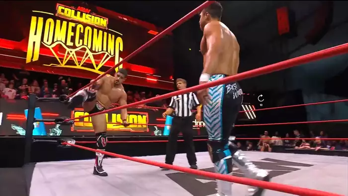 Далее нам напоминают о будущем матче Кайла Флетчера и Марка Бриско, сопровождая комментарием Марка о его желании завоевать своего первое золото в AEW. Аналогично нам напоминают о стычке между Адамом Пейджем и Самоа Джо на прошедшем Динамите и о их будущем матче на Реслдриме. Следом мы переходим к следующему матчу: бывшие партнеры по Экклеймд снова объединяются, но уже перед лицом более грозных соперников.