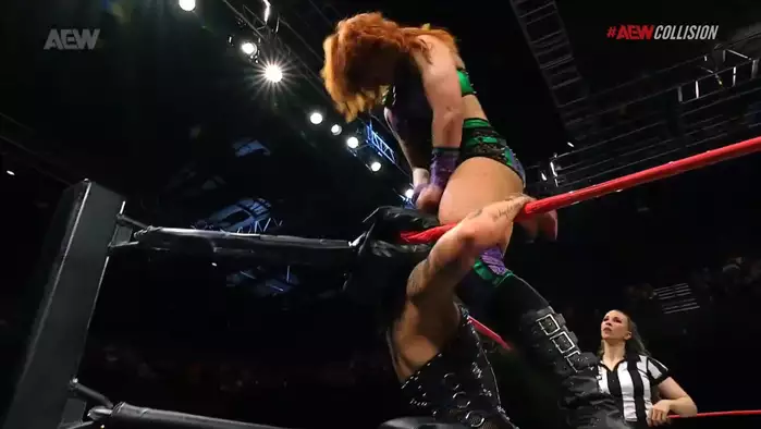 Следом матч. Тай Мэло и Анна Джей против Майи Ворлд и Хайан Ладно, я вас обманул – это не матч, а сквош. Небольшая тренировка для ТайДжей перед столкновением с Меган Бейн и Мариной Шафир. Победители: Тай Мэло и Анна Джей Далее мы переносимся за кулисы сегодняшнего Коллижена, где Лекси Нэйр берет интервью у Афины. Афина, полная возмущения, потребовала должным образом себя представить и спросила у Лекси, знает ли она, почему Афина не чувствует себя вечной чемпионкой ROH среди женщин? Лекси призналась, что это потому, что её победили в пятый раз за пять лет, но больнее всего от того, что это поражение пришлось от Харли Кэмерон. Афина готова поспорить, что Харли считает себя особенной, но она не была бы такой, если бы в ее дела не влезла Крис Стэтлендер, если бы Билли Старкз смогла вернуть доверие Афины и хоть раз поступить правильно и если бы Мерседес Моне поддерживала Афину так же, как Афина поддерживала Мерседес. Если бы не все это, Афина не оказалась бы в таком затруднительном положении, когда приходится сомневаться в себе. Так что, если Харли и выживет в БЛАД ЭНД ГАДС матче, то она поймет, что Афине не нужны ни пять человек на своей стороне, ни клетка, ни оружие чтобы выбить из Харли всю дурь. И сделает это Афина не ради своих миньонов, ни ради тех, кто ей действительно дорог, Афина сделает это ради себя. А потом она сделает из Харли марионетку для МИТ. Афине интересно, что об этом плане думает Лекси, лишь соглашается со словами: «Да, повелительница миньонов».