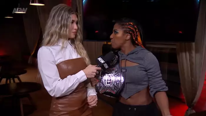 Далее нам пересказывают последние дела Меган Бейн: как она одержала победу в командном матче с Мариной Шафир на прошлом Коллижене, как на Динамите одолела Мину Ширакаву в матче за преимущество в клетке и даже как заглянула в Стардом на огонек. После мы снова оказываемся за кулисами арены, где сидящая на лестницы Крис Стэтлендер обращается к Мерседес Моне. Крис говорит, что, хоть у Моне есть многое, чего нет у Крис, например, больше успеха, уверенности, наследия, у Крис есть одна вещь, а может и две, которых нет у Мерседес – это сосредоточенность. Крис сосредоточена на главном женском чемпионстве AEW, а Мерседес – нет. Если Мерседес думает, что это еще одна блестяшка, о которой можно упомянуть в надписи на торте или которую можно повестить на какого-либо смазливого парня, то она ошибается. Чемпионка продолжает мысль: Моне выбыла из турнира за командные титулы, потому что не была сосредоточена на ней, и Крис последует за Мерседес прямо в БЛАНД ЭНД ГАТС, пройдет там все, что только можно, пока Мерседес не соизволит наконец-то на ней сосредоточиться. А потом, на Фулл Гире, через год после нашего первого боя, в совершенно другом мире - Мерседес полностью сосредоточится, её зрение прояснится, хотя это ничего и не изменит.