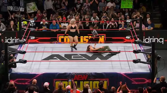 Мэлло не успевает толком отпраздновать победу, ведь ее сразу атакует Шафир. Марина проводит удушающий своей будущей оппонентке, но ей на помощь спешит даже не Анна Джей, а сама Тони Шторм! Тони бежит, бьет бедную уходящую из рингсайта Валькирию, влетает на ринг и успешно проводит Шторм Зиро Шафир. Ширакава почти отомщена.
