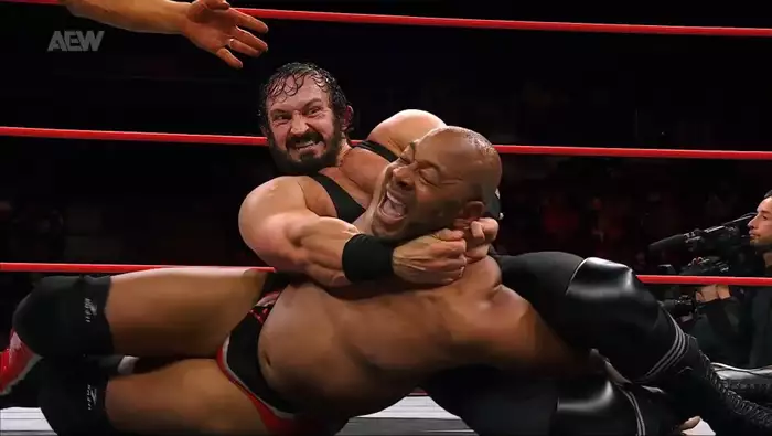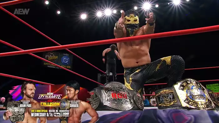 После нам напоминают о столкновении на последнем БЛАД ЭНД ГАДС – Динамите между Адамом Пейджем и всеми тремя представителями Упсов с последующим анонсом, что матч на Фулл Гире между Пейджем и Джо будет в стальной клетке. Далее снова матч.