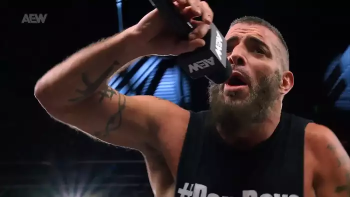 Далее нам напоминают о том, что своей команду в БЛАД ЭНД ГАДС матче принес Кайл О’Райли болевым на Джоне Моксли. Кайл в записанном после матча ролике сказал, что Джон – акула, но, если знать, как она двигается, то ее легко победить, и О’Райли показал это в прошедшем матче. В любом другом месте и в любое время Моксли может попытаться доказать, что Кайл неправ. Тони Шавоне поинтересовался у Джона, что он об этом думает, пока толпа скандировала о том, что Джон сдался. Джон не выдержал, скинул наушники, взял в руки микрофон и сказал, что О’Райли и Конгломерат провели отличный вечер, но давайте проясним: О’Райли совсем не похож на Моксли, он не такой крепкий, как Моксли, и его команда устроена не так как команда Моксли. И О’Райли не должен об этом забывать. Он выиграл один матч, молодец, но сможет ли он сделать это снова? Еще раз? В любое время, в любом месте – ответил Джон О’Райли и Конгломерату. Они знают, где найти Москли и его Всадников, на этих словах Джон покинул рингсайд, показывая зрителям средний палец.