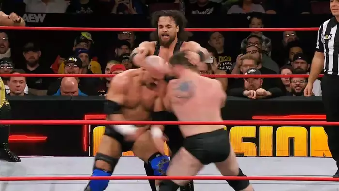 Далее уже Джош Александр (и мы – зрители – в том числе) вспоминает о существовании Майкла Наказвы. Джош бьет Майкла и издевается над Кенни Омегой, говоря, что все это веселье для него и спрашивая, что думает Омега, учитывая, что он на все готов ради своей доли в миллионе долларов, после чего Джош наносит последний удар Наказаве.