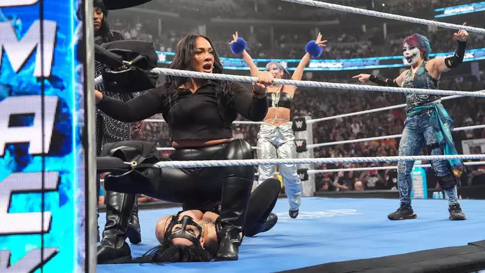 Ее музыка играет, но Ли едва успевает выйти, как Воины Кабуки, Лэш Ледженд и Ная Джакс выбегают на ринг и нападают на них… Растерянная ЭйДжей Ли принимает решение бежать на помощь, но прямо возле ринга ее сбивает с ног Бекки Линч. Хилы избивают фейсов и празднуют доминирование. Бекки помогает добить Рию, и затем она пожимает руки команде, показывая, что является их пятой участницей, завершив таким образом SmackDown.