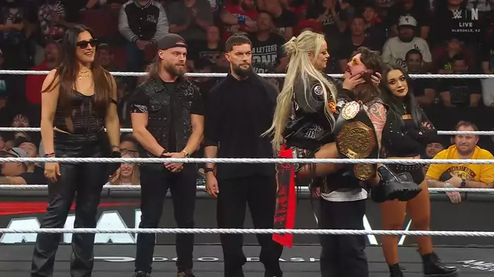 Доминик Мистерио, как настоящий триумфатор, выходит на ринг вместе со всей группировкой, кроме Лив Морган. Дом заявляет, что он - легенда, и если Джон Сина - величайший всех времен, то Доминик только что побил этого величайшего всех времен и теперь уже точно стал величайшим Мистерио всех времен! Он величайший лучадор всех времен, король лучадоров и величайший Интерконтинентальный чемпион в истории. Но в одиночку он бы этого не сделал. Ему помогли его парни - Финн и ДжейДи. Без Роксанн и Ракель тоже было бы не обойтись. Спасибо им! Но есть один человек, без которого точно ничего бы не вышло... Дом представляет Лив Морган.