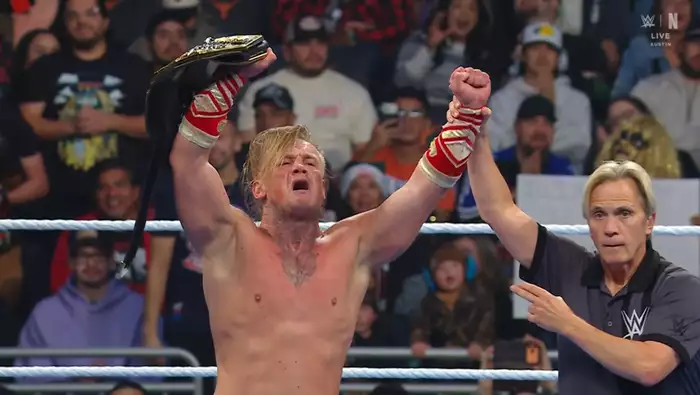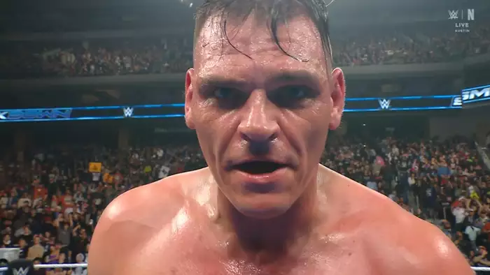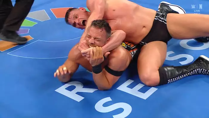 Найт ударяет рестлера о комментаторский стол, многократно и агрессивно, и перебрасывает его через него, красуясь перед публикой. Гюнтер возвращает Найта на ринг, атакуя его. Бывший чемпион начинает работать на руку, Найт отбивается, вбрасывает Гюнтера в угол, тот выставляет ногу и сносит его лариатом. Публика букает Гюнтера и напоминает ему, что он сдался. Попытка суплекса от Гюнтера, Найт переводит в некбрейкер. Бади слэм от Гюнтера возвращает матч в стадию его доминирования. Удары от Найта, Гюнтер пытается закрепить на нем слипер, но Найт выносит его в ринг-сайд и прыгает на него клоузлайном. Чоп от Гюнтера, а затем бросок прямо на апрон!