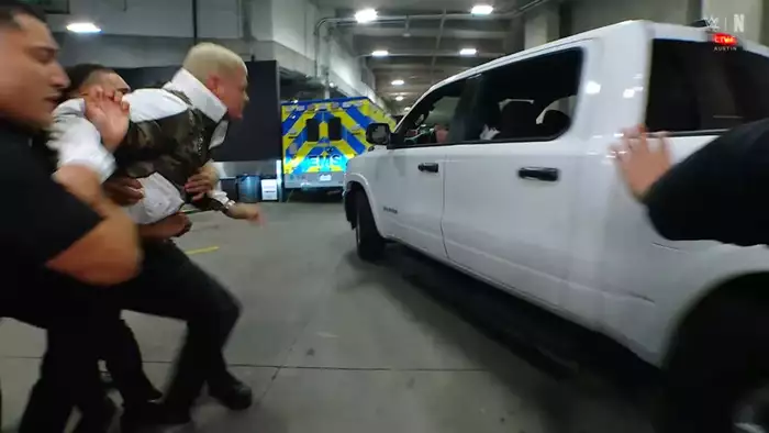 Шарлотт Флэр поправляет Алексе Блисс волосы, та ей - кофту. Аска и Каири появляются на арене. ЭлЭй Найт надевает свою шляпу и заходит внутрь. Гюнтер важно пьет воду. Из белой машины выходит Дрю Макинтайр, и его перехватывает Ник Алдис с охраной! Мужчины начинают спорить, Макинтайр доказывает, что имеет право здесь появляться, потому что участвовал в War Games, Алдис отвечает, что это так не работает и Дрю надо уехать отсюда. Макинтайр соглашается, садится в машину и говорит, что он уедет, но Ник накажет не его, а фанатов! И тут, внезапно, на Макинтайр нападает Коди Роудс, который успел забраться ему в машину, и начинается драка, во время которой Дрю ругается и не может понять, "какого хера" происходит. Коди вытаскивают из машины, Дрю жмет педаль газа и уезжает!