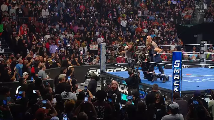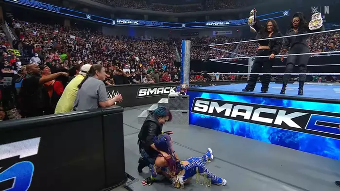 Рестлерши празднуют победу, но на них нападают Лэш Лэдженд и Ная Джакс! Рестлерши нацеливаются на Сэйн, но Аска спасает ее, забивая Лэш ударами! Нападение на Аску, но Джакс подбрасывает ее и наносит хэдбатт, и уже Каири они уничтожают вдвоем. Джакс лезет на третий канат, намеревается сбросить себя, но Аска вытаскивает союзницу. Лэш и Ная позируют с титулами.