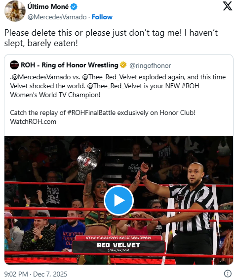 Мерседес Моне просит официальный аккаунт ROH удалить запись, где она проигрывает свой титул в матче против Ред Вельвет: