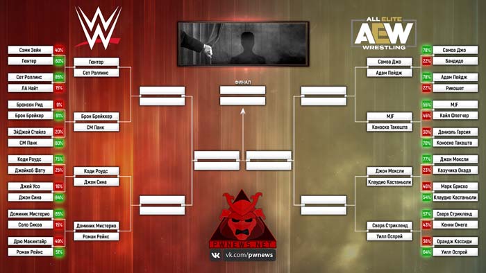 Что ж, те, за кого я голосовал (говорю про WWE), прошли практически в полном составе, кроме Зейна и Мака. В таких голосованиях часто бывает то, что мысли с 1/8 могут повторяться в последующих турах, когда речь об одних и тех же рестлерах, но попробую особо не копировать.