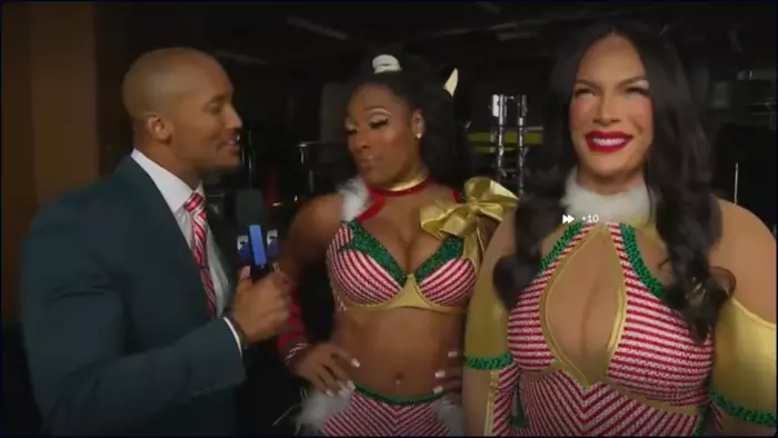 Найя Джекс и Лэш Ледженд дают простенькое предматчевое интервью о том, что Шарлотт и Алекса повержены и им не терпится разобраться еще и с Кабуки Воинами на пути к женским командным титулам.