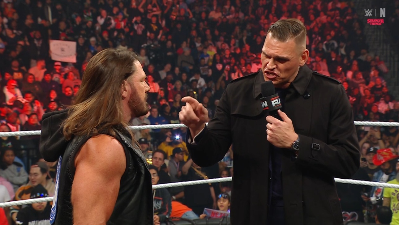 Эй Джей говорит Гюнтеру, что ему нечего сказать, после чего бросает микрофон в Гюнтера и уходит с ринга.