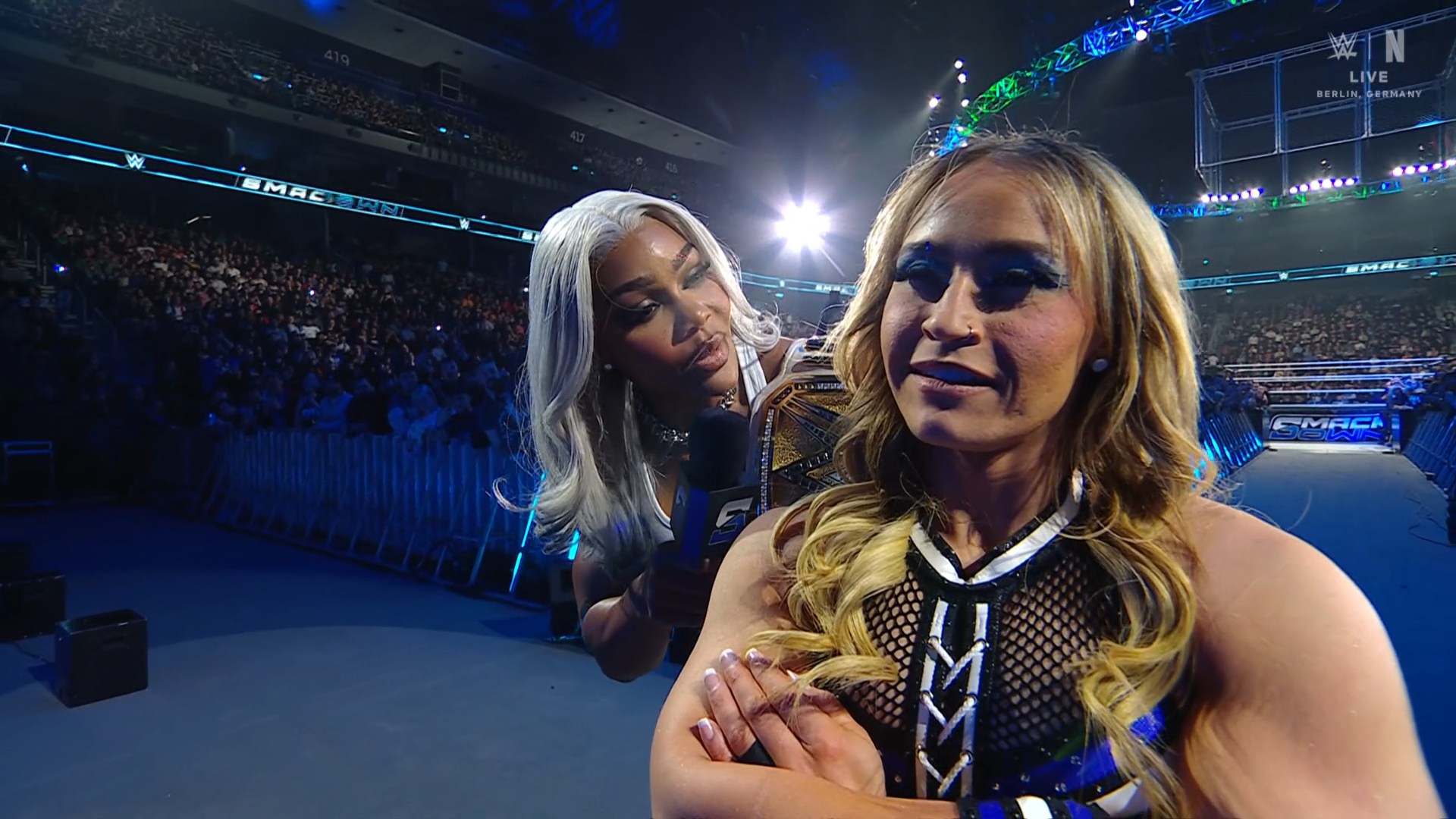 Рэнди Ортон пробирается к рингу. Европейская публика, как и положено, громко напевает его музыкальную тему по пути к рингу, а сам Рэнди позирует перед ними, а после уже берет микрофон, чтобы поговорить. Он отмечает, как же круто снова вернуться на этот ринг. Он приветствует людей в Берлине на SmackDown и говорит, что... его речь прерывает музыкальная тема Трика Уильямса. Мистер Уильямс выходит в своих белых трусах и уверенно движется к рингу. Рэнди Ортон сложа руки наблюдает за его выходом, а после начинает слушать, зачем Трик решил сюда выйти.