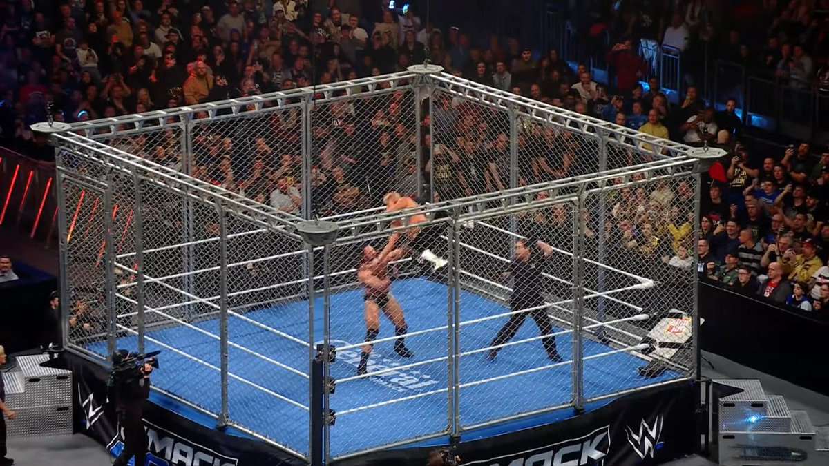 Отлежавшись некоторое время на ринге, Коди Роудс первым встает, а Макинтайр продолжает лежать. Рефери проявляет его состояние, но Дрю говорит, что может продолжать матч. Коди встает на канаты и опять лезет вверх, но Макинтайр поднимается и не дает ему это сделать. Они бьют друг друга головами в клетку, а после падают на канаты. Макинтайр лезет к выходу из дверей клетки, но внезапно кто-то появляется в черном капюшоне и маске. Этот человек откидывает рефери, снимает маску и мы видим Джейкоба Фату.