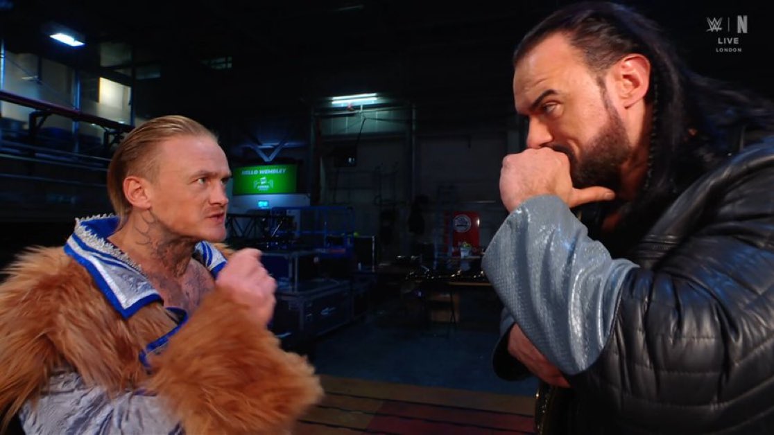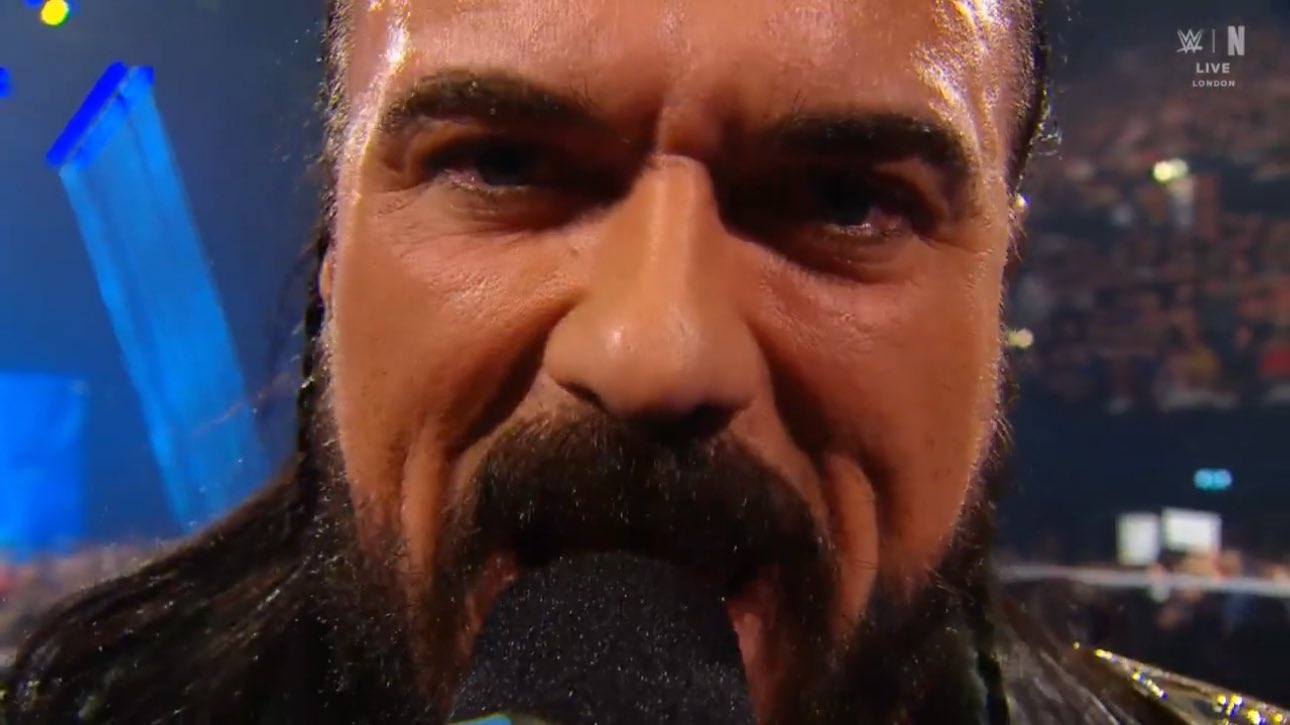 Мировой чемпион Дрю Макинтайр под музыкальный хор из волынок выходит на арену с чемпионским титулом. Он говорит, что молился об этом, и это наконец случилось. Фанаты чантят, что он это заслужил, а Макинтайр говорит, что с тех пор, как он выиграл титул, его окружает только любовь. Он хочет обратиться к каждому фанату… идите вы к черту.