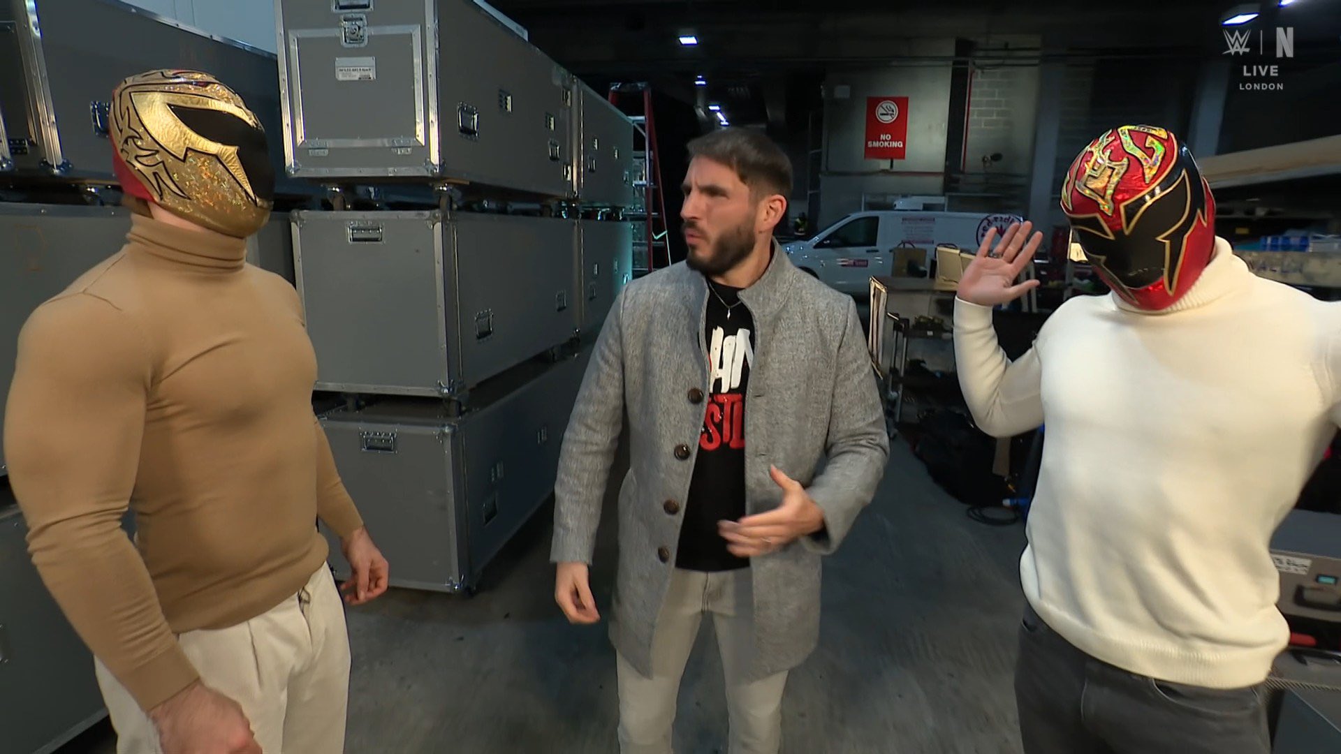 Джонни Гаргано и Кэндис Лерэй идут по коридору. Он держит в руках маску, но рядом появляется Аксиом. Гаргано отдает маску своей жене и она уходит, а рядом возле Гаргано появляется еще один Аксиом. Он не понимает, что происходит, и в этот момент получает удар по лицу. Фейковый Аксиом снимает маску и мы видим там Натана Фрейзера. Он говорит, что на следующей неделе у них будет матч, и тогда Аксиом получит свою маску обратно.