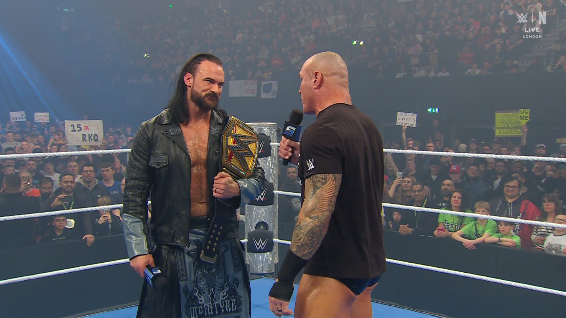 Его речь неожиданно прерывает музыкальная тема Рэнди Ортона. Макинтайр иронично спрашивает Ортона, вышел ли он сюда, чтобы поздравить его с победой? Ортон заявляет, что вышел сюда не для этого. Он вспоминает, как Макинтайр пару месяцев назад пробил его головой в комментаторский стол, поэтому он вышел сюда, чтобы вернуть должок. Он сделает всё, чтобы добраться до этого титула и обязательно напомнить Макинтайру, что из себя представляют три самые опасные буквы в мире спортивных развлечений… РКО.