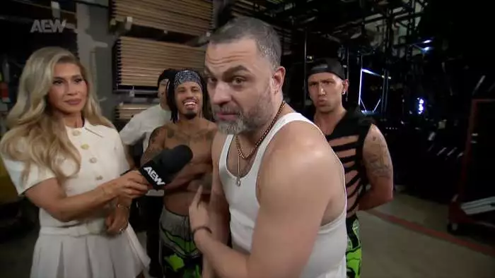 После ролика, напоминающего нам о страстях, крутящихся вокруг главного мужского титула AEW, мы снова в компании прекрасной Лекси Нэйр, которая в этот раз берет интервью у свежеиспеченного TNT – чемпиона Томассо Чиампы. Томассо празднует победу вместе с семьей, он поцеловал их на прощание и рассказал, что ничего бы этого не было, если бы не поддержка семьи. Они сыграли важную роль в принятии его решения, и с тех, как он перешел в AEW, фанаты приняли его как члена семьи. Обращаясь к Марксу Бриско, Томассо говорит, что считает его настоящим мужиком, к которому испытывает только уважение. Ему говорили, что в AEW выступают только лучшие, но вот он меньше недели выступает в AEW, а уже чемпион. Томассо приложил ухо к титулу и сказал, что тоже его любит, у его дочери появилась младшая сестра, и это они должны отпраздновать. Он пообещал фанатам AEW сделать вместе что-то особенное.