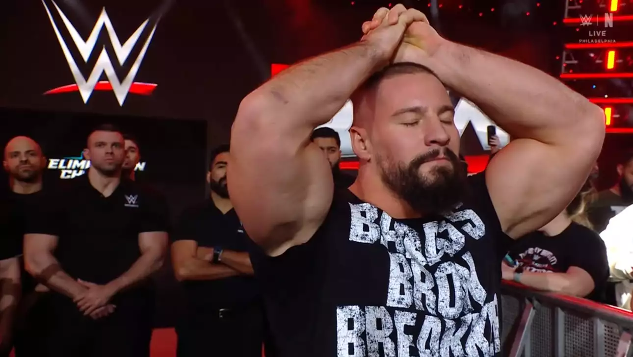Шоу имеет непривычное начало, потому что оно открывается с Брона Брейкера, пробравшегося на ринг и начинающего крушить комментаторский стол!
