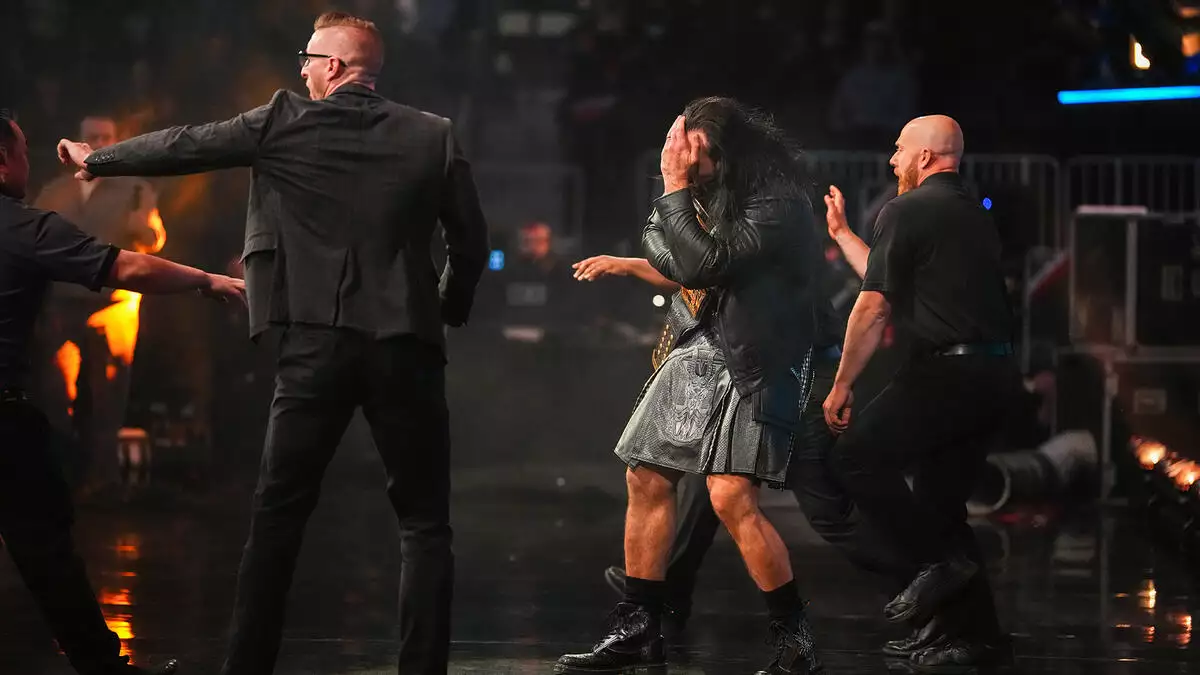 После этого звучит музыкальная тема Дрю Макинтайра, и он выходит на ринг. Дрю берет микрофон, но неожиданно появляется Джейкоб Фату, который сразу же нападает на него и наносит серию ударов. Фату атакует его через хип-атак в углу ринга. Дрю поднимается на ноги, однако Фату выбрасывает его за пределы ринга мощным клоузлайном. Фату добивает его суисайд дайвом. На место выбегают официальные лица WWE, но Фату швыряет их в металлические ступени. Дрю пытается укрыться за баррикадой, однако Фату снова попадает по нему ударом. В итоге сотрудники WWE все же сдерживают Фату, а Дрю пользуется моментом и скрывается.