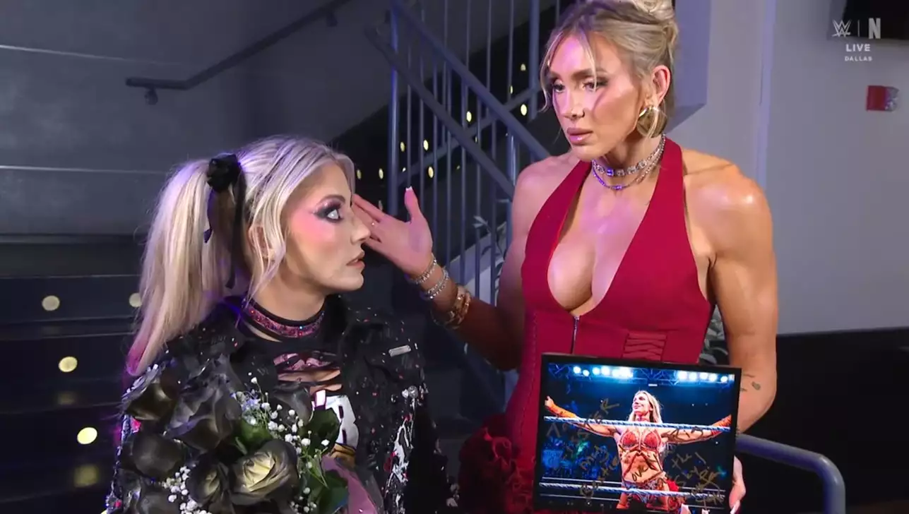 Свет гаснет, в фанатской зоне стоят Уайатты. Соло продолжает позировать с трофейным светильником. Шарлотт говорит, что сожалеет о произошедшем на Рамбле. Алекса отвечает, что это Ная ее устранила. Флэр добавляет, что Джакс не испортит сегодняшний день. Шарлотт приносит цветы и свою фотографию с автографом для Алексы в честь дня святого Валентина.