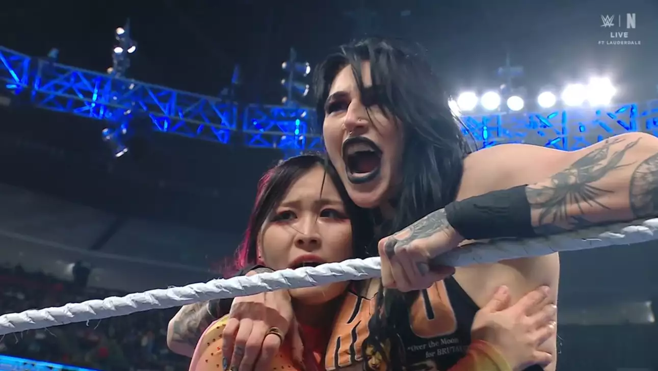 Байрон находится с Лэш Лэдженд и Наей Джакс. Они поправляют его насчет названия своей команды. Ная говорит, что сейчас самое загруженное время года - у нее матч за место в Elimination Chamber, а на следующей неделе у них будет матч за командные титулы. Лэш заявляет, что они идут за всем. Если у кого-то есть хоть малейшее сомнение, кто правит дивизионом , то все увидят это на Рестлмании. Джейд Каргилл выходит к рингу. Джейд говорит, что не будет повторять снова. Она защищает титул в свое время. Джординн старалась изо всех сил, но ее сил не хватило. Все такие смелые за кулисами и такие громкие в интернете, но когда дело доходит до того, чтобы выйти против нее, все замолкают. Джейд говорит Лив, что та объявит свое решение в понедельник в Атланте. Каргилл живет там, так что она будет на месте, чтобы услышать этот выбор. Джейд перечисляет варианты для Чембера. Она заявляет, что после Рестлмании останется чемпионкой, потому что она все еще та самая сука. Джейд бросает несколько слов в адрес Шарлотт Флэр, пока та идет к рингу на свой матч. Флэр отвечает "вуууукает" ей в лицо, в моменте даже кажется, что они сейчас поцелуются. Рефери велит Джейд уходить за кулисы. Следом выходят Киана и Ная. Шарлотт Флэр пр. Киана Джеймс пр. Ная Джакс - квалификационный матч Рестлерши начинают с того, что перекрикиваются, Шарлотт атакует Киану, толкает ее в Джакс, налетает сама, но ее сбивают шалдер блоком. Джеймс примазывается к Джакс, но та не хочет иметь с ней дела. Флэр подсекает Наю, бьет Киану ногой в голову, Джакс подбрасывает Шарлотт и делает хэдбатт, повторяет на Киане. Хип атаки от Джакс, прием на Киане превращается в стинк фейс. Шарлотт отбивается, на этом реклама. Джеймс отбрасывает Флэр на апрон, та залезает на канаты и напрыгивает на нее кроссбади. Чопы по Нае и Киане, суперкик Джакс, сальто-клоузлайн на Джеймс. Флэр делает чопы Нае, ее на апроне подбивает Киана, Джакс хватает Джеймс на плечи, Шарлотт сбивает ее биг бутом и получается самоан дроп. Флэр видит момент и лезет на канаты для мунсолта и он удачно проходит! Удержание, но Джакс вырывается. Ная ловит атаку Флэр, тизерит бомбу, Шарлотт бросает ее франкенштайнером, но попадает в самоан дроп. Внезапный самоан дроп от Кианы, удержание, но не проходит! Джеймс лезет на канаты, Джакс убегает, Шарлотт влетает в Киану биг бутом, лезет к ней на канаты, Джеймс не дается, но получает спонтанный спэниш флай от Шарлотт! Удержание, но рестлерша вырывается. Джакс вытягивает Шарлотт, вносит ее в рингпост, возвращает на ринг, Киана тут же врезается в Джакс, провоцирует ее влететь в ступеньки, намеревается провести Флэр четверку, но попадает в пауэрбомбу, и уже Шарлотт закрепляет болевой! Ная возвращается и тут же проводит Флэр лег дроп, не дожидаясь превращения в восьмерку. Джакс подносит Киану к углу и прыгает на нее сверху! Удержание, но Флэр сбивает ее метеорой! Публика чантит This is awesome. Шарлотт напрашивается на удары Джакс, сама же ее жестко бьет, но падает от атаки. Флэр обзывает ее сукой, и получает хэдбатт. Флэр ударяет ее о канат, сама лезет на канаты, Джакс за ней, и хочет провести ей самоан дроп, но Шарлотт реверсирует в бомбу, после чего замыкает восьмерку! Киана ловит момент и сворачивает Флэр! Победительница: Киана Джеймс Моя оценка матча: 4.25