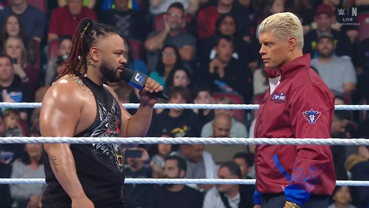 Выходит Ник Алдис и объявляет, что дал Дрю выходной на вечер. Он не хотел этого делать, потому что Дрю - чемпион. С Чембером на носу и Рестлманией на горизонте он не может рисковать. Ник говорит, что сейчас время Коди, поэтому они могут пройти в его офис и обсудить, как Коди доберется до Дрю. Дрю появляется на балконе и говорит, что Коди и Фату не могут держать имя чемпиона подальше от своих ртов. Он благодарит за выходной, но делает то, что хочет. Он так любит синий бренд, что купил целую ложу, чтобы смотреть шоу. Дрю обращается к Джейкобу, говоря, что слышал, как тот трепал языком, и вот он здесь. Фату - сплошной лай и никакого укуса. Что он собирается делать? Фату покидает ринг и нападает на охрану, мастерски раскидывая каждого. Ник велит охране убрать Дрю отсюда. Он говорит, что выведет Дрю из здания, и они смогут поговорить. Макинтайр заявляет, что весь чертов мир против него, потому что он чемпион. Они завидуют ему, потому что он чемпион. Все хотят быть им, потому что он чемпион. Коди отвечает, что мир не охотится за ним из-за того, что он чемпион. Они охотятся за ним, потому что он мудак.