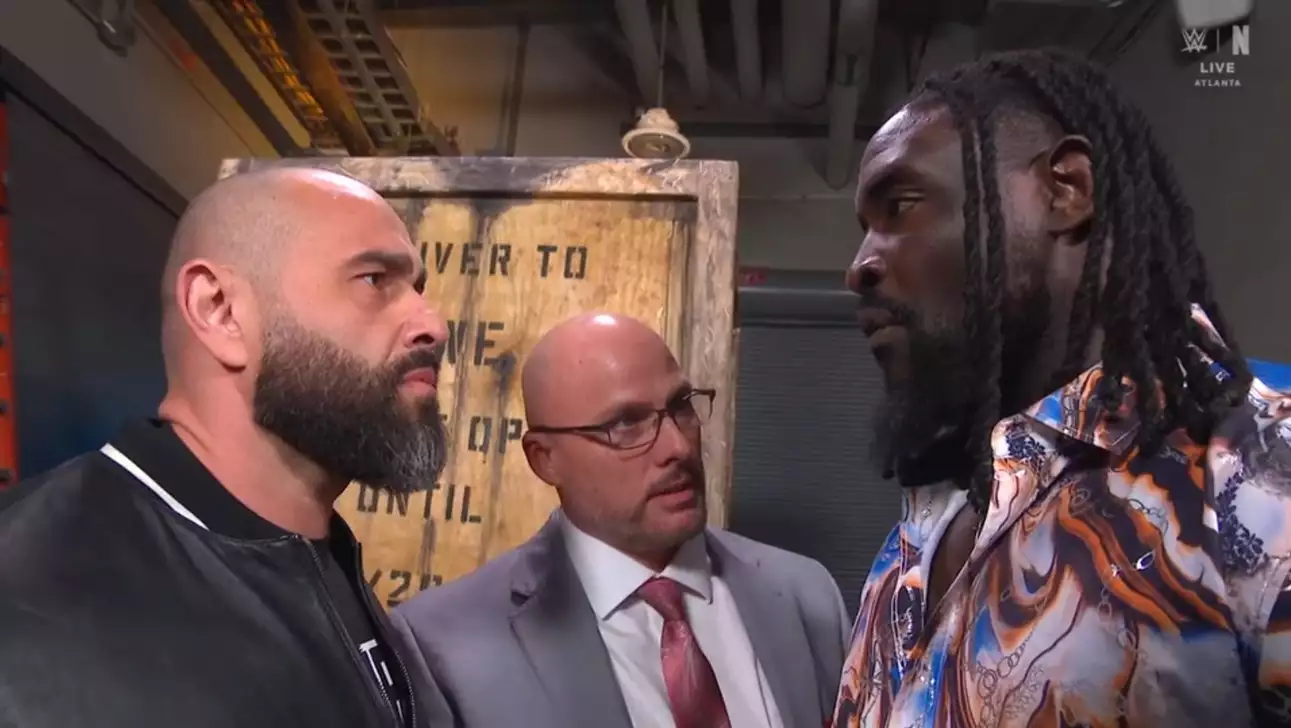 Джевон Эванс выходит на матч, Кофи Кингстон появляется во время рекламы вместе со своими напарниками.