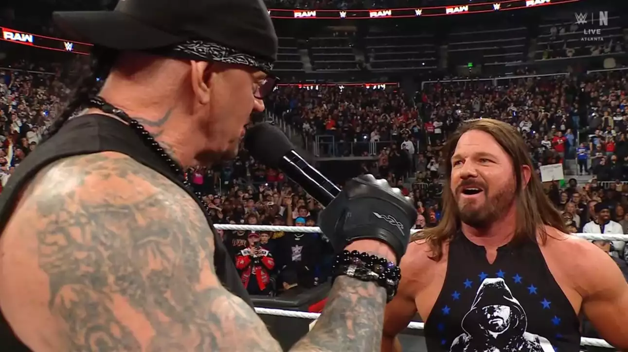 Однако... Раздается гонг, свет гаснет, и все знают, что это означает! Гробовщик подъезжает к рингу на мотоцикле, а потом заходит к Стайлзу. Тейкер спрашивает ЭйДжея, собирается ли тот оставить свои вещи. У них есть незавершенные дела. Ветеран напоминает поговорку: "Если ты видишь, как я иду, значит, тебя уже нет". Но он изменил ее. "Если ты видишь, как я иду, значит, ты уходишь". Тейкер говорит, что для него большая честь объявить... ЭйДжей Стайлз войдет в Зал Славы в этом году!