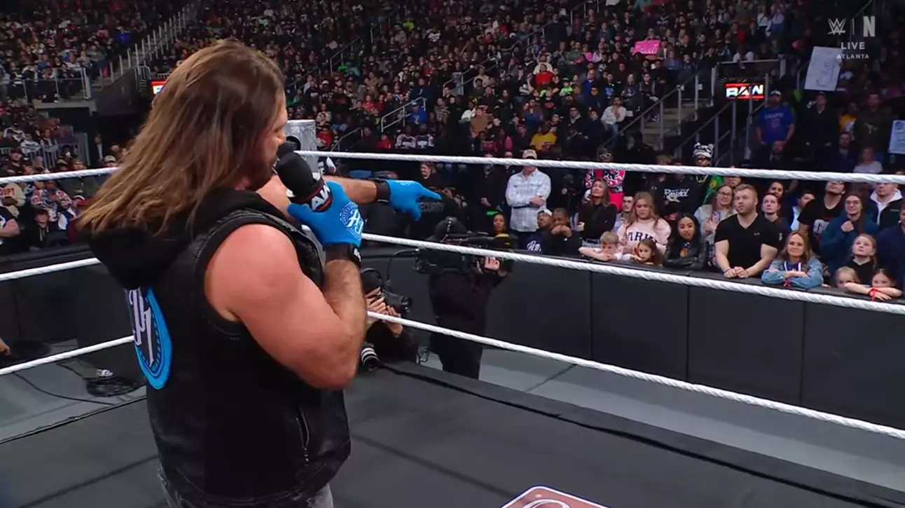 ЭйДжей признается, что на Royal Rumble 2026 все пошло не так, как он хотел против Гюнтера. Это было не так, как он планировал. Но это поэтично. Не многие уходят там же, где начинали. Стайлз напоминает, что дебютировал на Royal Rumble в 2016 году. Его последний матч состоялся на Royal Rumble 2026 года. Он не оставил перчатки в ринге, но он человек слова.ЭйДжей снимает жилет и кладет его на мат. Он не оставил перчатки на Королевской Битве, потому что хотел забрать их домой, а потом прийти в Атланту, в этот ринг и оставить их здесь. ЭйДжей снимает перчатки и кладет их поверх жилета.