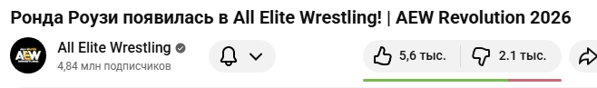 Видику с появлением Ронды накидали дизлайков. Лайки конечно не перебило, но для AEW аномально высокое количество дизов