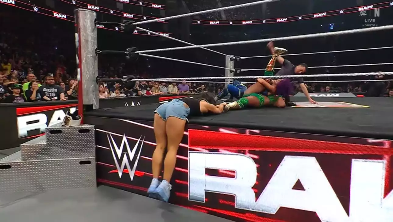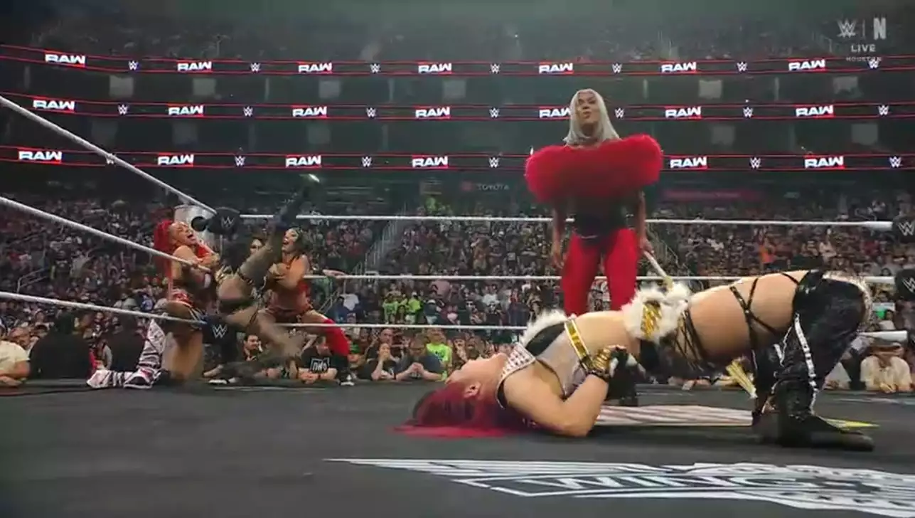 Лэш выбрасывает Бэйли с ринга одним рывком. Бэйли огрызается с Джакс, возвращается, придавливает Лэдженд, но та ее отбрасывает. Бэйли бьет ее в углу, бьет коленями на апроне, врезается последним, хочет напрыгнуть локтем, но та сбивает ее в полете, после чего выбрасывает с ринга байсикл киком. Реклама.
