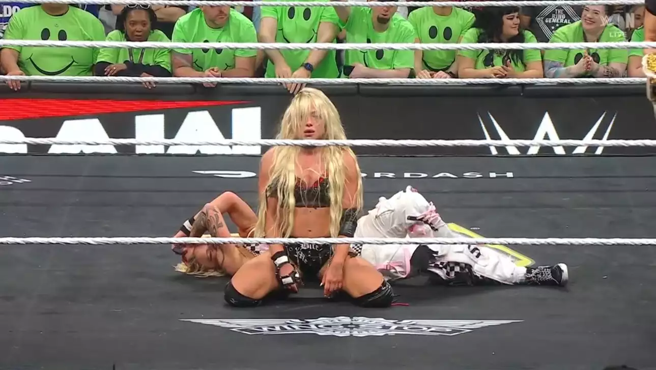 Лив с остальными девушками празднует победу, как тут их пугает старт музыкальной темы... Стефани Вакер! Бывшая чемпионка, судя по каблукам, не намерена драться, Лив этим пользуется и подходит вплотную к ней, поднимая титул над головой. Противостояние не окончено.