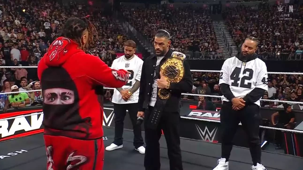 Роман Рейнс вместе со своими братьями выходит к рингу, и он хочет, чтобы Вегас признал его. Он говорит, что собирался сделать все коротко и по делу, поговорить о бизнесе и будущем. Но он столкнулся со своими кузенами, поэтому сначала хочет обсудить семейные дела. Роман говорит, что скучал по этому. Он скучал по их полному доверию, уважению и восхищению. Он скучал по тому, чтобы вести дела вместе с ними. Прямо сейчас они разделены и разбросаны. В таком виде они слабы. СМ Панк может говорить гадости. Какой-то рэпер из 90-х говорит о них. Джей - Йитмен. Они изменили обстановку, и к ним приходят потерявшие актуальность рэперы. Это не "мы". Вот это - "мы" (Рейнс показывает кулак). Вот это - сила. Когда они вместе, их никто не может тронуть. Они правили этим бизнесом четыре года подряд. Он не просит их служить ему. Он хочет, чтобы они были его кровью и стояли с ним. Джимми заявляет, что говорит и за своего брата тоже: Роман всегда будет их племенным вождем. Джимми и Джей поднимают пальцы вверх, Рейнс повторяет за ними, но музыка Джейкоба Фату прерывает их.